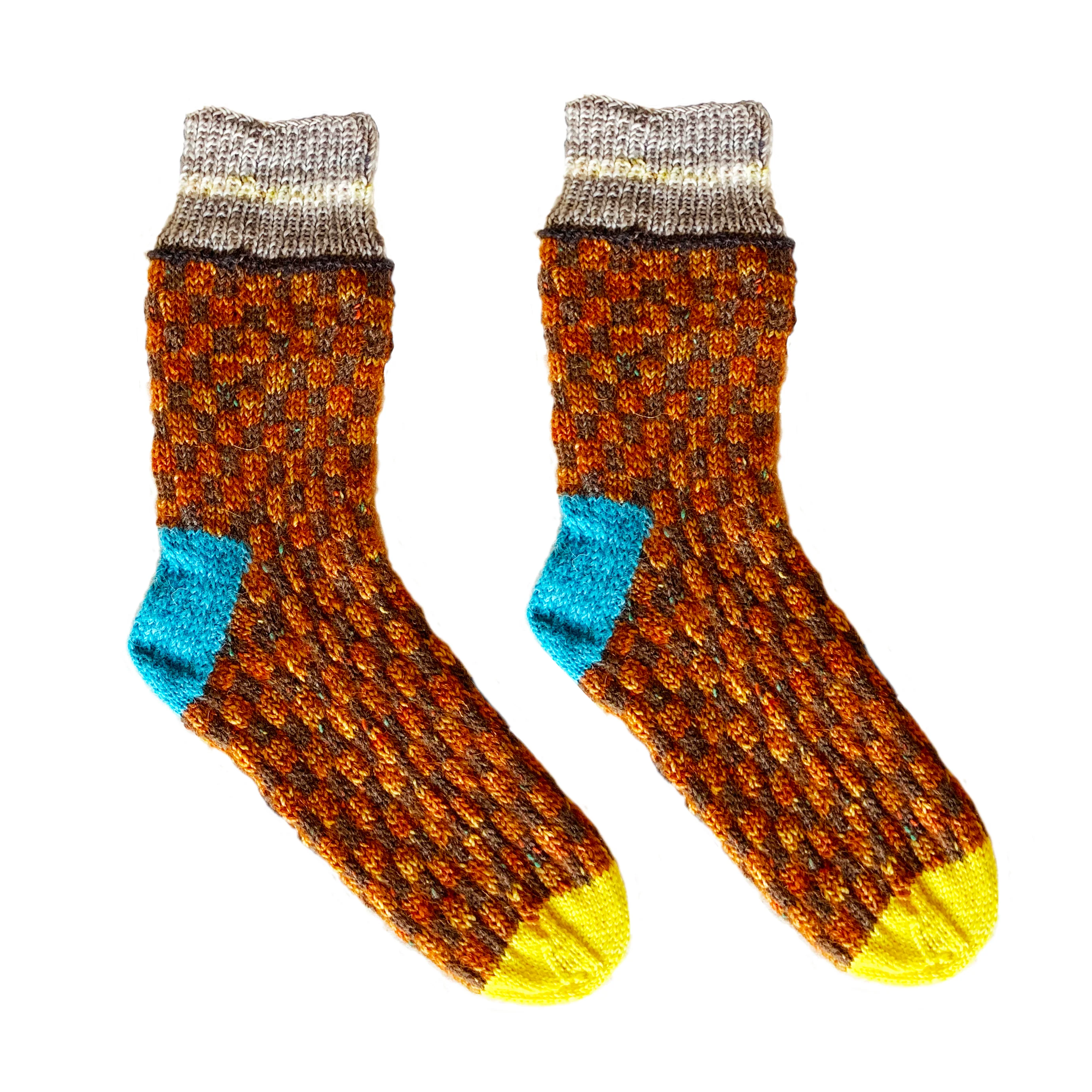 Beep Beep! This checkered sock pattern is inspired by vintage taxis. Lots of opportunity for fun uses of color!